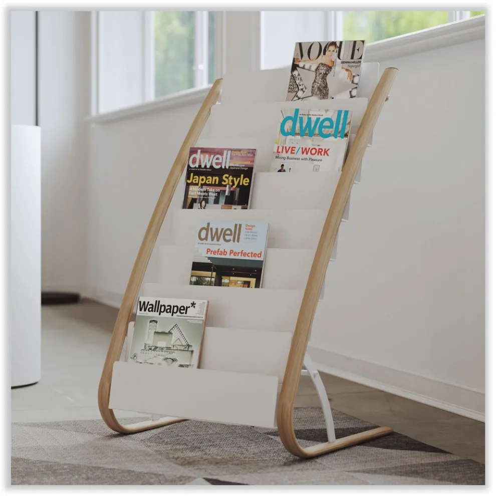 22.8 x 19.69 x 36.61 Literature Floor Display Rack – White/Woodgrain – DDEXPO8WBC