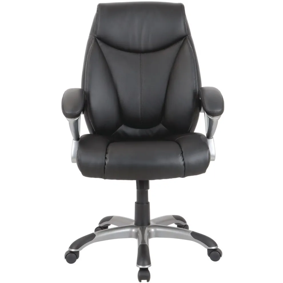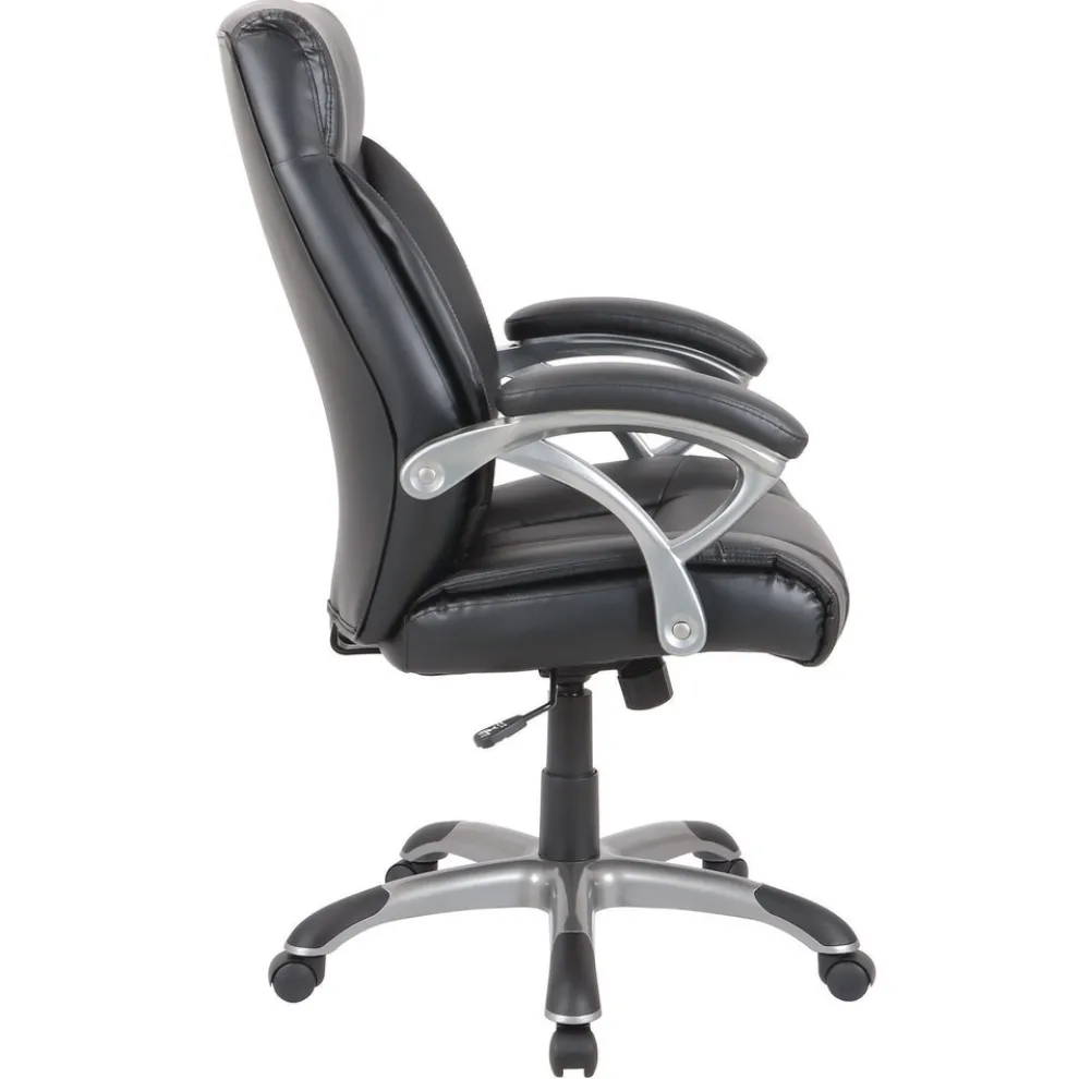 18.62 in. to 22.56 in. Seat Height Fulford Bonded Leather High-Back Managers Chair Supports 275 lbs. – Black Seat/Back, Silver Base – FD41B19