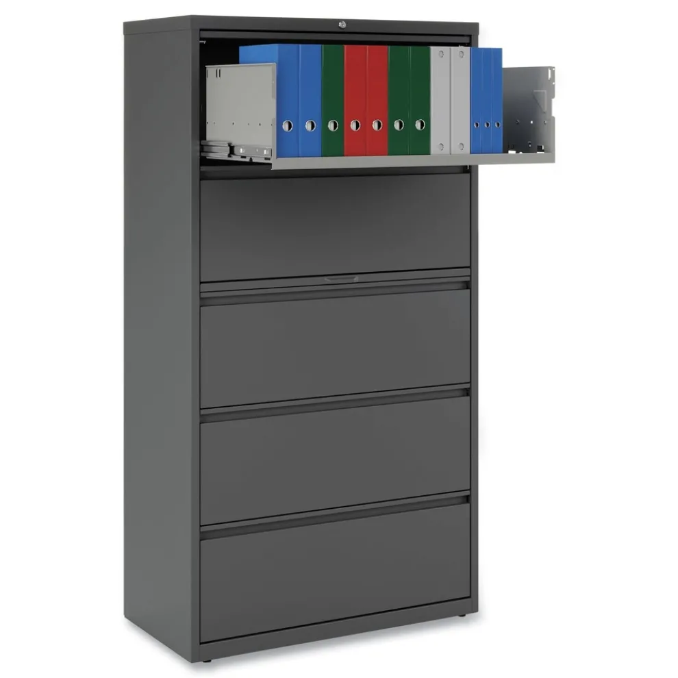 36 in. x 18.63 in. x 67.63 in. 5 Lateral File Drawer – Legal/Letter/A4/A5 Size – Charcoal – HLF3667CC