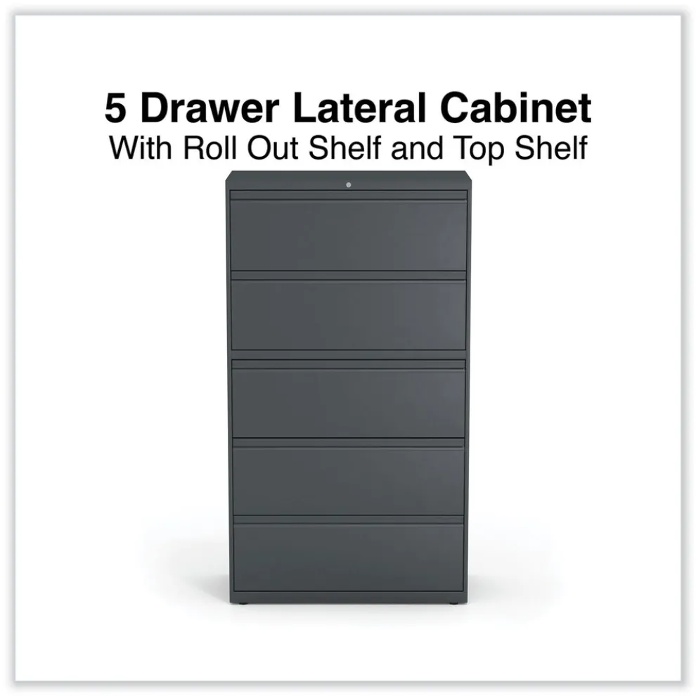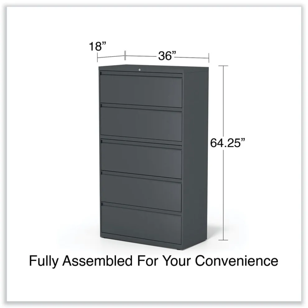 Alera 25499 36 in. x 18.63 in. x 67.63 in. 5 Lateral File Drawer – Legal/Letter/A4/A5 Size – Charcoal