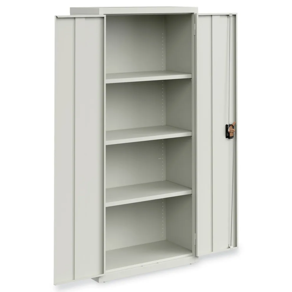 Everyday steel storage cabinets are a concealed-storage solution that’s useful in a variety of environments: homes, garages, basements, businesses, schools, restaurants, hotels, hospitals and more. Space-efficient and flexible, these cabinets feature an attractive but durable design that integrates easily nearly anywhere. Fully welded steel construction keeps your essential materials protected, organized and secure. Smooth, nonporous, baked-enamel finish protects the steel from corrosion while ensuring the interior and exterior are always easy to clean. Recessed handles provide a low-profile appearance that won’t get in the way. Three-point locking system with lock rods helps ensure your items remain secure when you lock them away. Lock cores are removeable, enabling all-keyed-alike convenience when employing more than one cabinet. All shelves support up to 180 lbs., and all but the fixed bottom shelf adjust in 1 in. increments, allowing you to configure your cabinet to suit your needs.