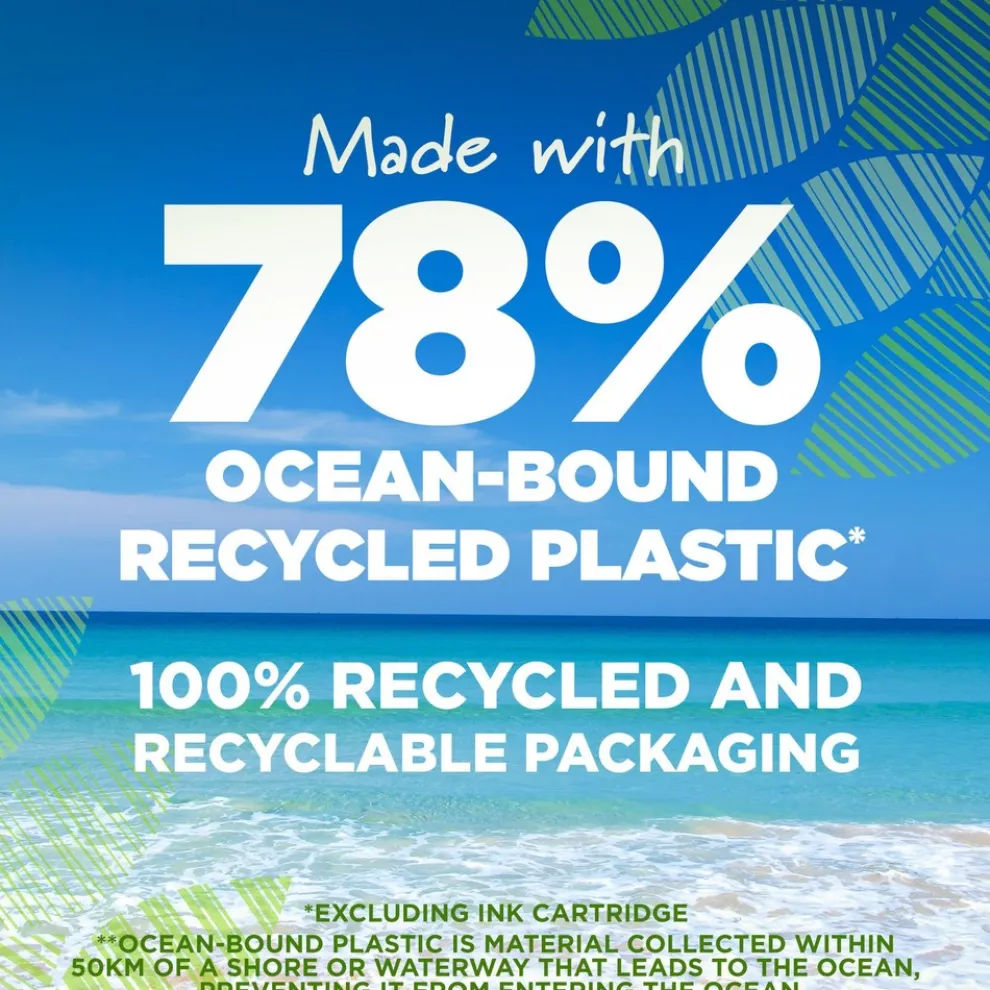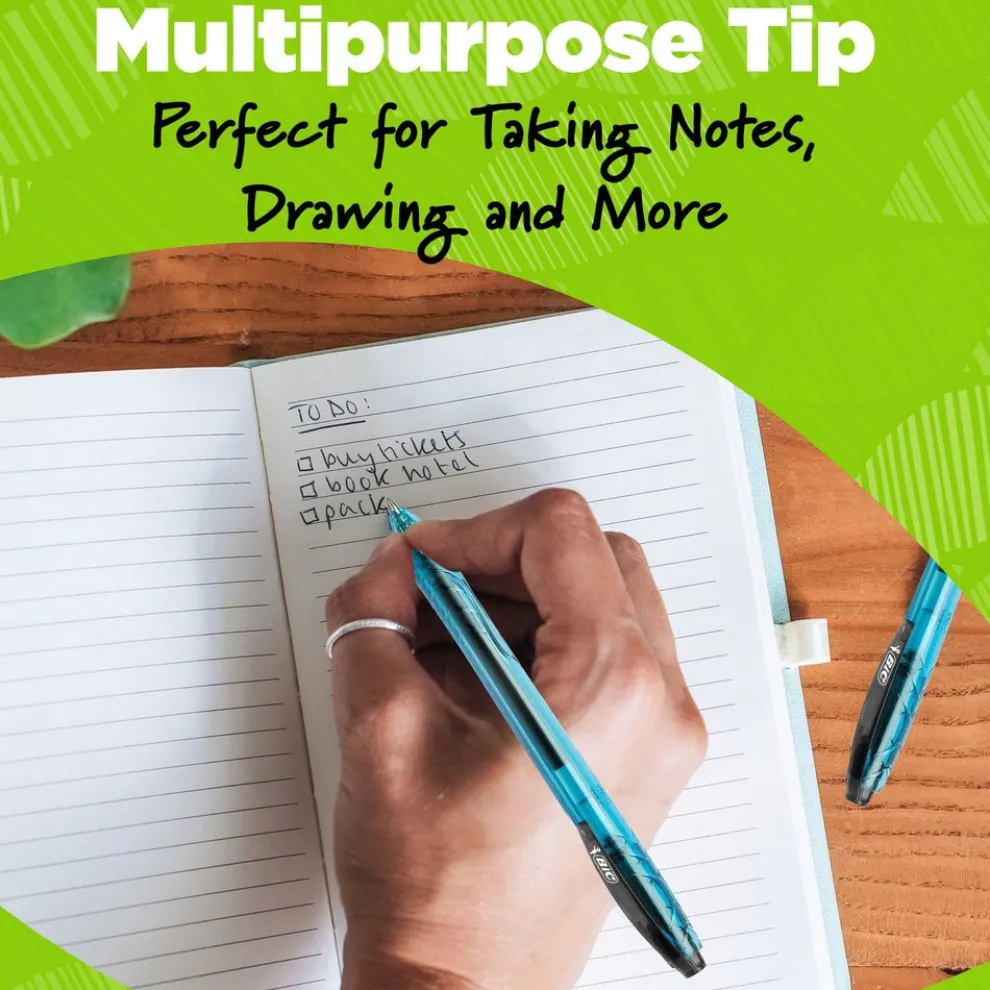 Help write our planet’s future with the long-lasting BIC ECOlutions ocean-bound plastic retractable gel pen. This gel pen is made from 78 percent ocean-bound recycled plastic, excluding the ink cartridge, and the paperboard packaging is made from 100 percent recycled content and is recyclable. All the materials used are collected within 31 miles of a shore or waterway that leads to the ocean, preventing them from entering the ocean. With a medium 1 mm point, this is the perfect BIC pen for everyday writing. The smooth writing ink system delivers hours of effortless writing. The classic, slender, semi-clear barrel makes it easy to check ink levels. This pen is a smart choice for righties and lefties, as the vibrant ink dries quickly to prevent smearing. Designed for convenience, this retractable pen lets you start writing with just one click. Pick up the BIC ECOlutions ocean-bound plastic retractable gel pen for a high-quality, affordable writing utensil you can trust.