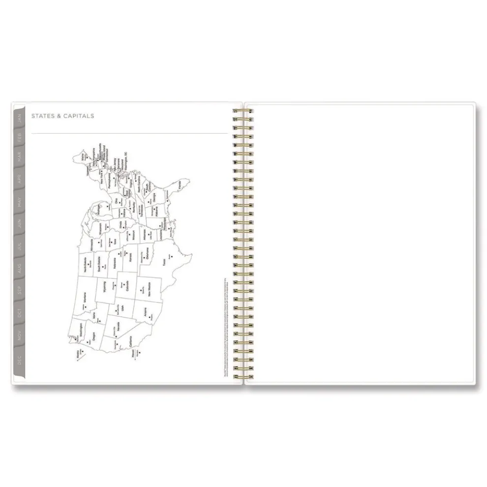 Stay focused and uplifted with this beautiful Kelly Ventura for Blue Sky planner! The fresh abstract lemon artwork will keep drawing you back in, making your organization dreams come true. The planner’s flexible, open-format weekly spreads and tabbed monthly views provide lots of space for all your planning and scheduling needs. Six past-year, untabbed monthly spreads help you transition into the new year, while extra resources at the back of the planner help you track yearly goals, contacts, important dates and more. Durable, twin-wire binding allows the book to lie flat when open, and thick, high-quality acid-free paper minimizes the potential for ink bleed through. The planner features gold-toned twin-wire binding.