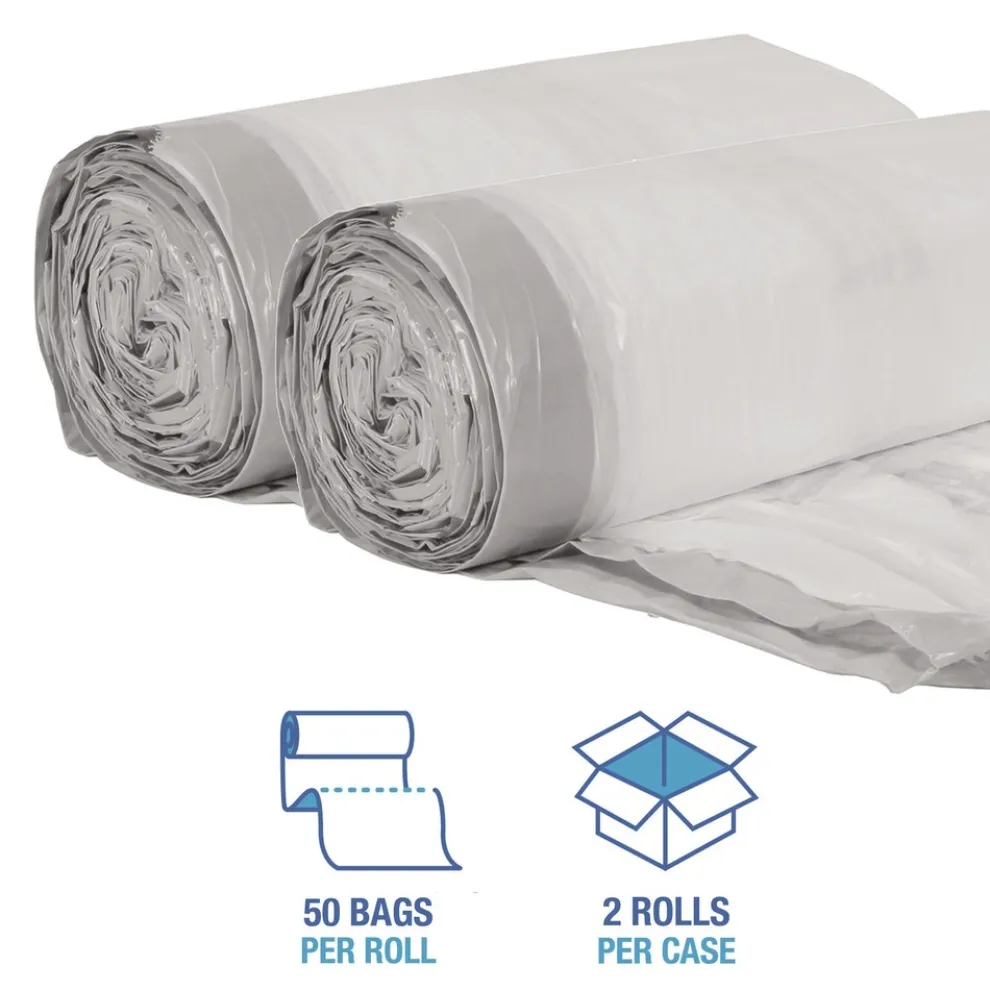 (50 Bags/Roll, 2 Rolls/Carton) 13 Gallon 24 in. x 28 in. Drawstring Kitchen Bags – White – 1DK100