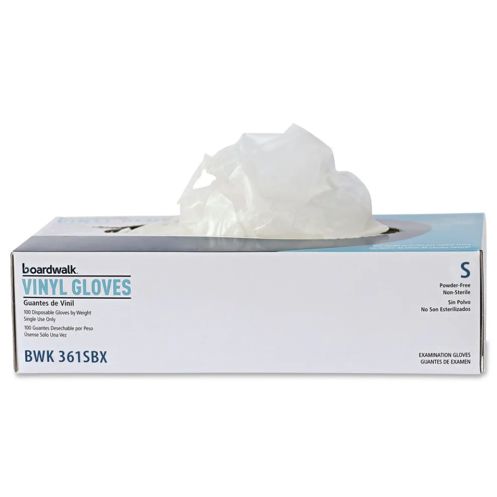 Boardwalk BWK361LCT 3.6 mil Thick 9.5 in. Long Powder-Free Exam Vinyl Gloves – Large, Clear (100/Box, 10 Boxes/Carton)