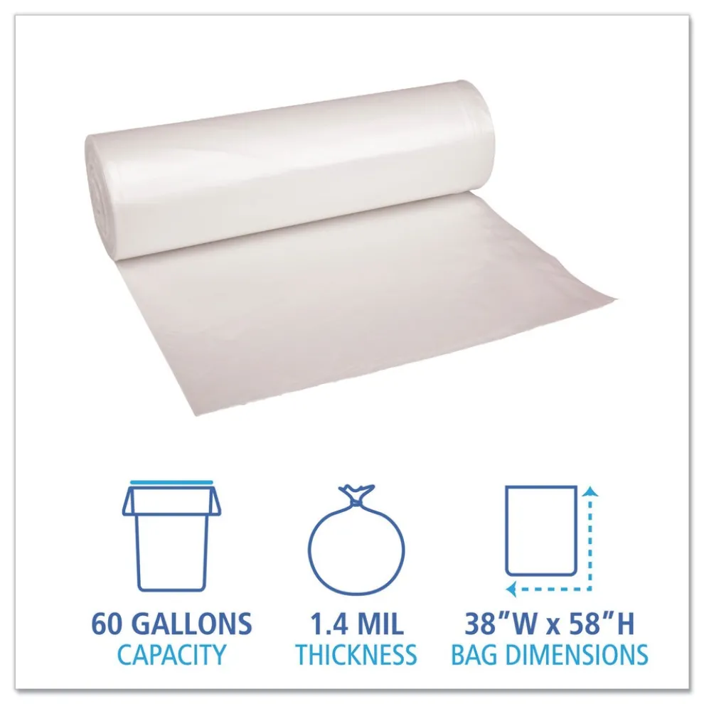 (100/Carton) 38 in. x 58 in. 60 gal. 1.4 mil Low Density Can Liners – Clear – 537