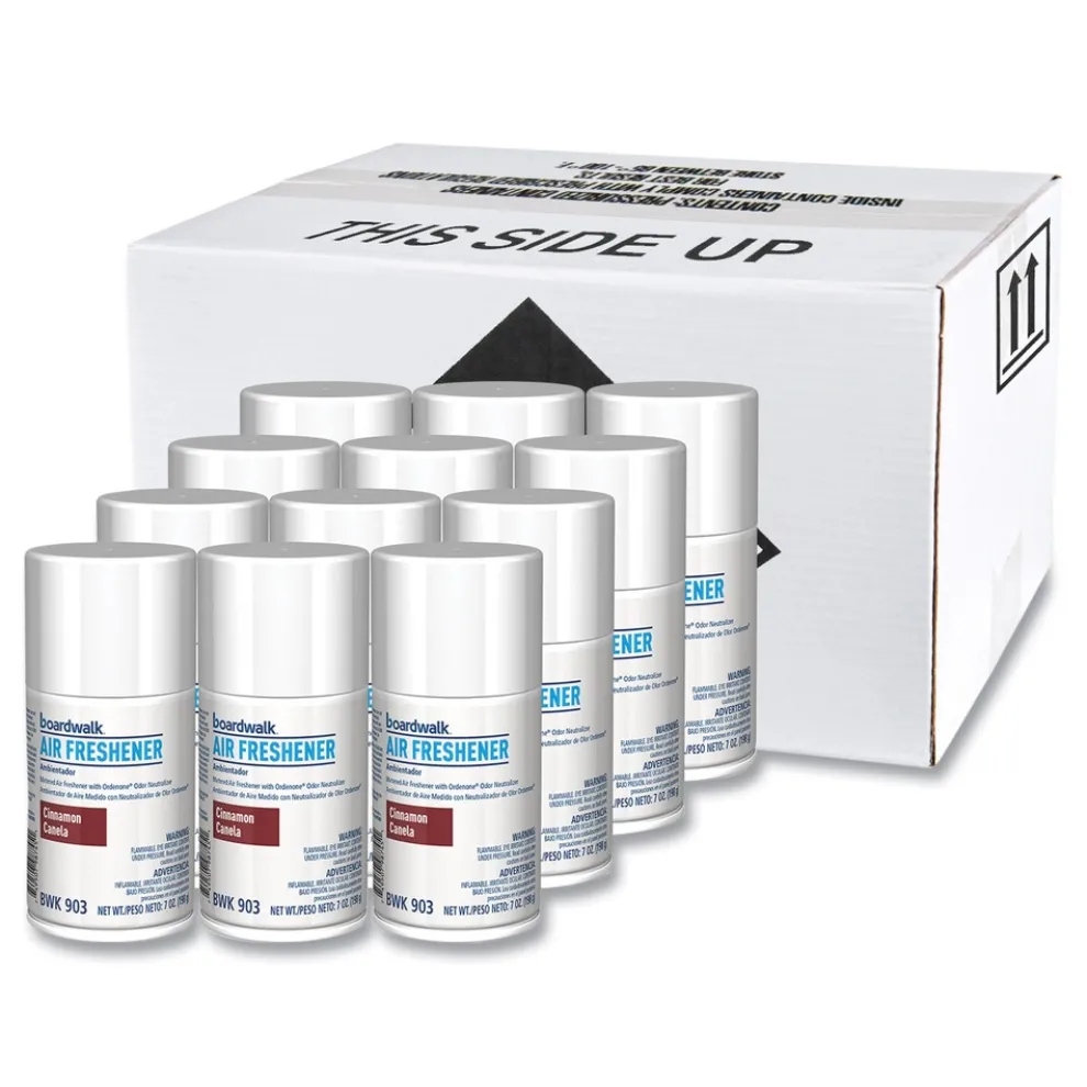 Boardwalk Metered Air Freshener Refill provide premium fragrances that create a pleasing atmosphere in any room. Each metered spray eliminates offensive odors while leaving behind a long-lasting freshness and inviting scent. Great way to discreetly freshen washrooms, trash collection areas, kitchens, lobbies, and classrooms. Refill fits most standard-size metered aerosol dispensers, which are sold separately. Each refill can last 30 days in dispenser.