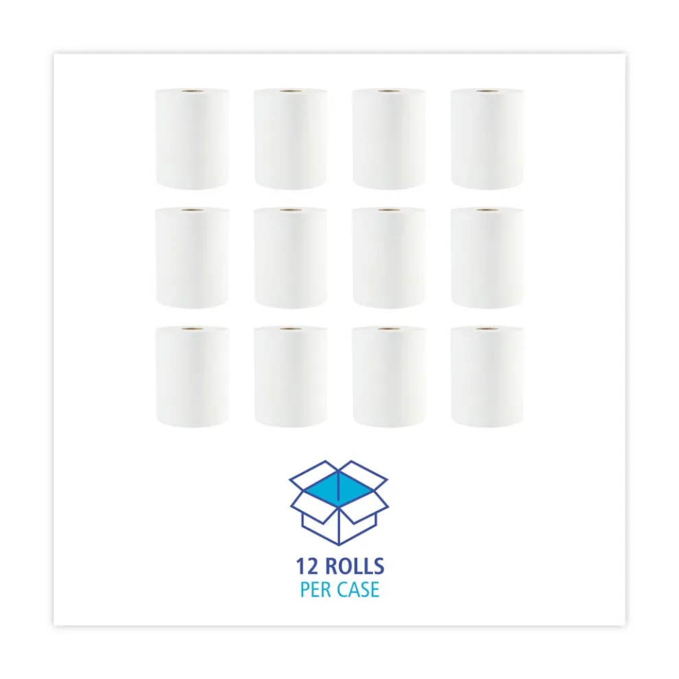 Boardwalk White Paper Towel Rolls are one-ply paper towels that are hardwound in rolls without perforations. Durable and absorbent material for hand drying in commercial washrooms with heavy traffic. Bleached white and slightly textured. Easy to grab and compatible with dispensers, which are sold separately. Great for frequent hand washing in offices, industrial settings, schools, healthcare, restaurants, public restrooms, and kitchens.