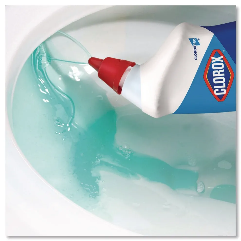 From CloroxPro, this manual toilet bowl cleaner with bleach disinfects restrooms in offices, schools, restaurants and other commercial facilities