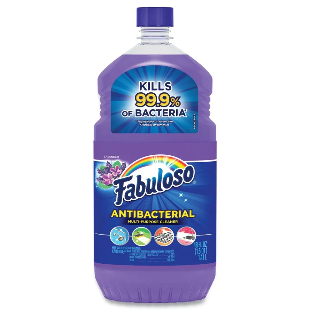 Multi-Purpose Antibacterial Cleaner leaves a fresh scent that lasts. Packaged in a convenient, easy-pour bottle, this cleaner is easy to use, leaving no visible residue, so there is no need to rinse.