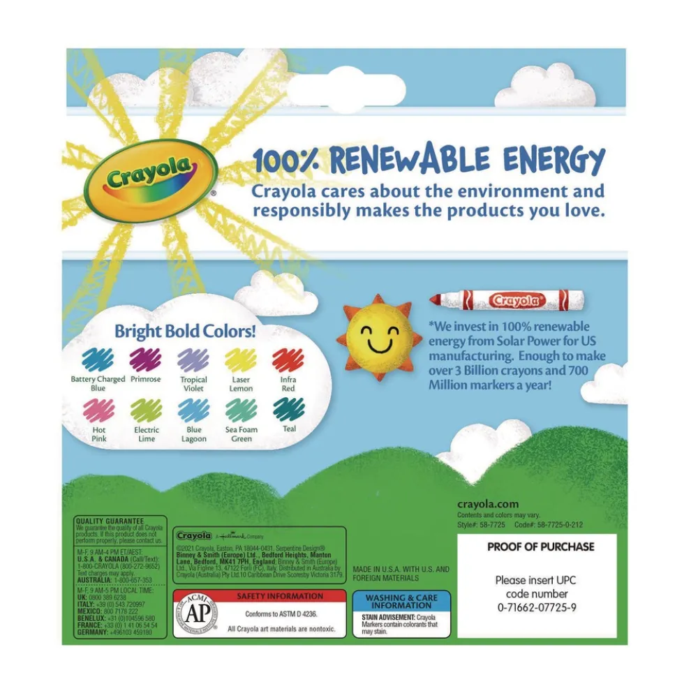 Crayola 58-7725 Broad Bullet Tip Non-Washable Marker – Assorted Tropical Colors