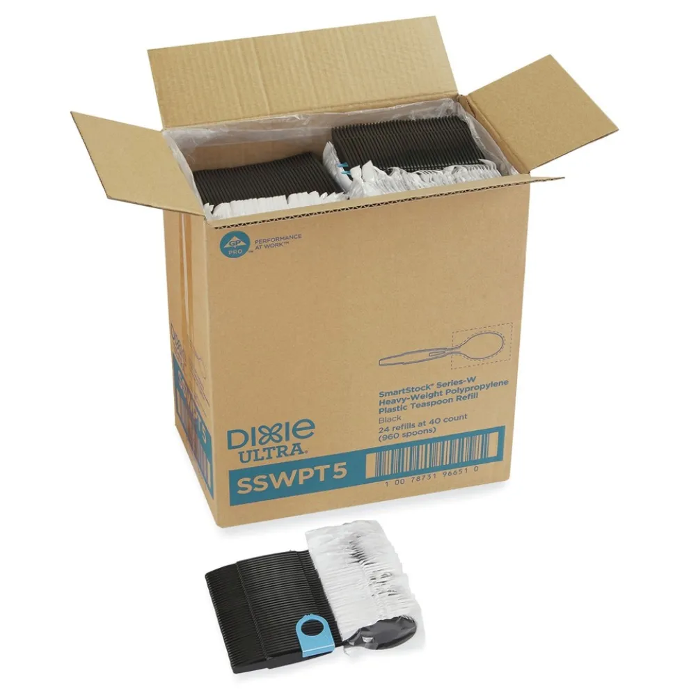 Dixie SSWPT5 SmartStock Wrapped Heavyweight Cutlery Teaspoons Refill – Black (960/Carton)