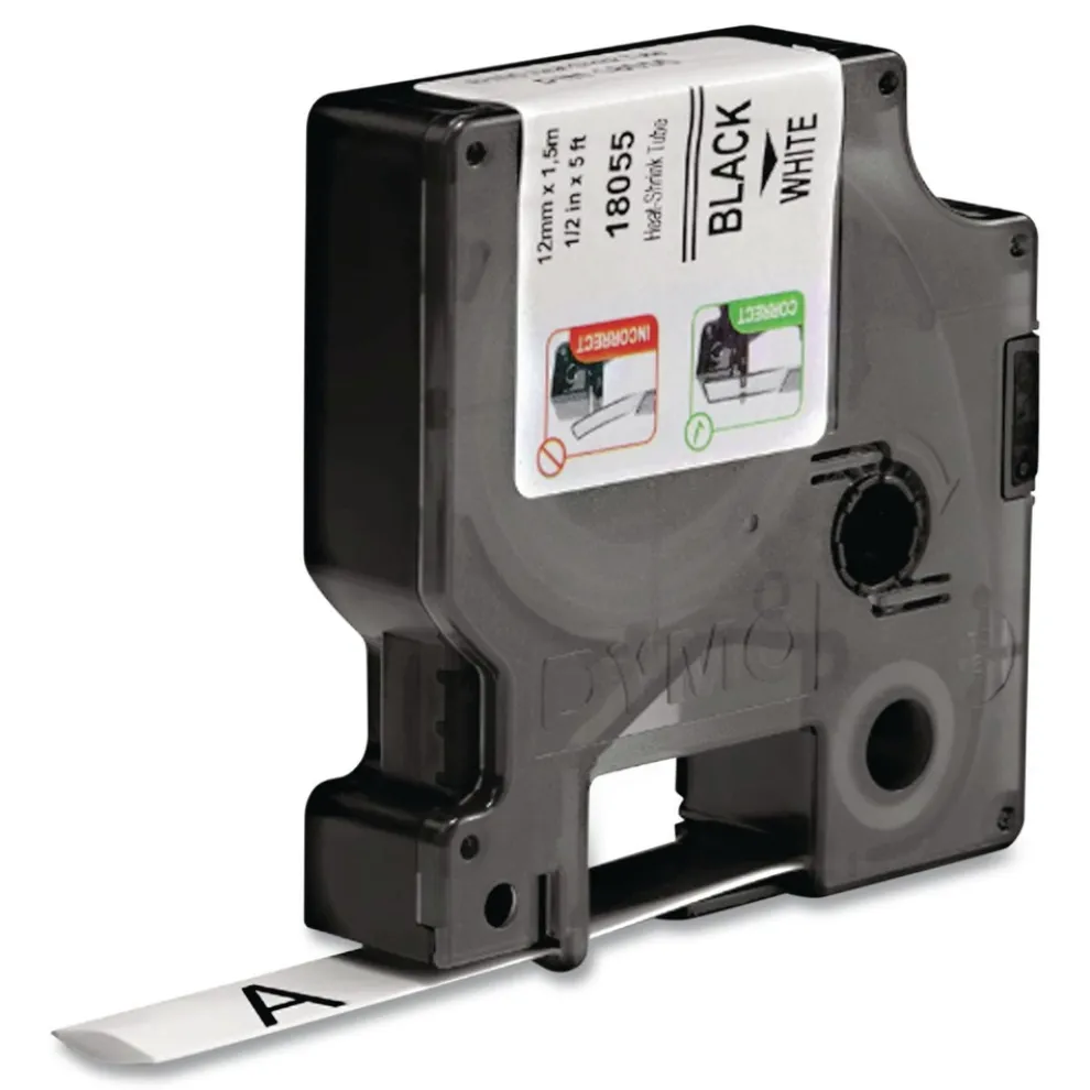 DYMO 18055 0.5 in. x 5 ft. Rhino Heat Shrink Tubes Industrial Label Tape – White/Black Print (1-Roll)