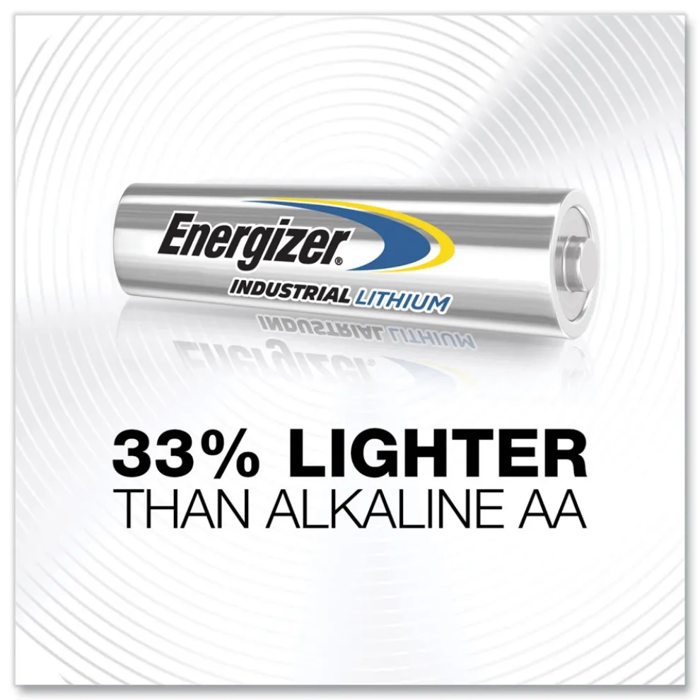 Power your industrial and professional devices with Energizer® Industrial® Lithium AA Batteries. Construction site, facility maintenance, medical center, business office and classroom—wherever you work, the longest-lasting professional AA batteries keep your electronics up for the job. In normal use, they’re 100% leakproof to protect your worksite devices, and they operate in temperatures ranging from -40°F to 140°F. With a 25-year shelf life, you won’t have device downtime. All of that lithium performance comes in a heavy-duty AA battery that weighs 33% less than an alkaline AA. When work depends on automatic paper towel dispensers, hard hat lights, pulse oximeters, and more, you can rely on the power and protection of Energizer® Industrial® Lithium AA Batteries.