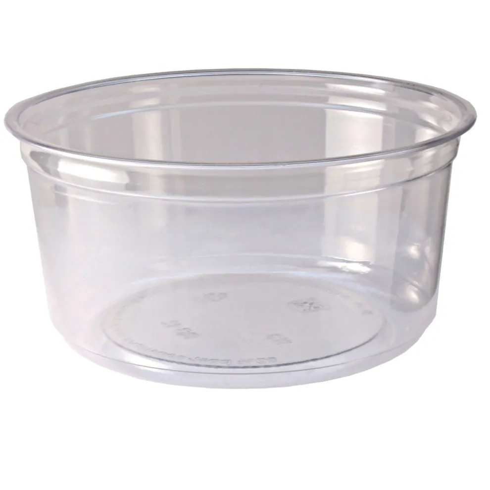 Made from recycled (PCR) PET plastic bottles. The recycled PET material performs well in cool temperature applications and is crack resistant. Durable and leak-resistant. Stylish and crystal-clear for complete product visibility. Paired with Recycleware Deli Container Lids, provides a snap fit lid application and removal.