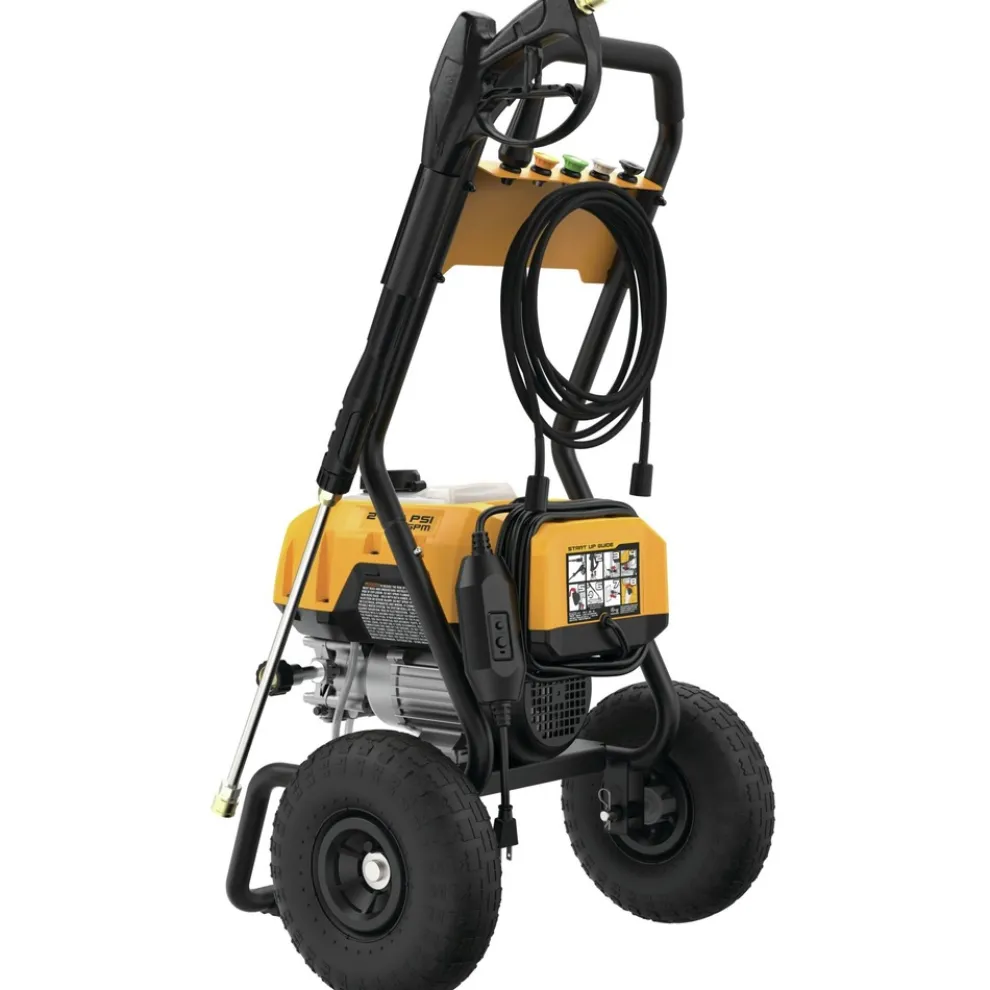 You can rely on the durable, mobile, and powerful DEWALT 2,400 PSI Pressure Washer, delivering enough power to handle your outdoor cleaning tasks. Be prepared to tackle just about any job or wash your vehicle with the accessories you need. This Cold-Water Pressure Washer comes equipped with 5 nozzles, including a Turbo nozzle and built-in storage for organization. Built to transport over rugged terrain, the pressure washer features premium 10 in. pneumatic wheels so you can take it to the jobsite. The 2,400 PSI Cold-Water Pressure Washer is backed by a 3-Year Limited Warranty.