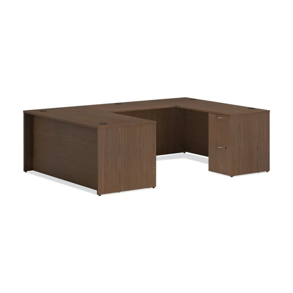 This non-handed bridge can be combined with a Mod desk shell and a credenza shell to create a U-workstation. The durable laminate surface is available in a variety of attractive finish options, which allows you to match other Mod elements. Storage pedestals must be ordered separately.