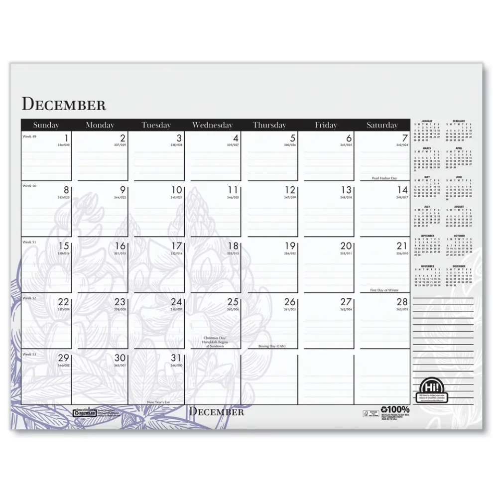 22 in. x 17 in. 12-Month (Jan-Dec) 2026 Recycled Desk Pad Calendar – Wild Flowers Artwork – 197