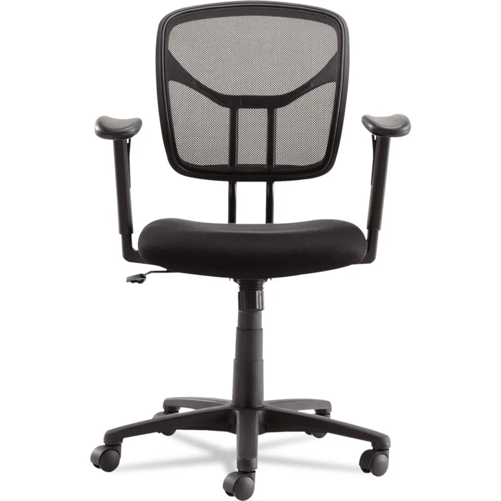 The economical choice for an everyday task chair. Cushioned mesh seat for all-day support. Ergonomic curved mesh back provides breathable comfort. Height adjustable padded arms for optimal arm placement.