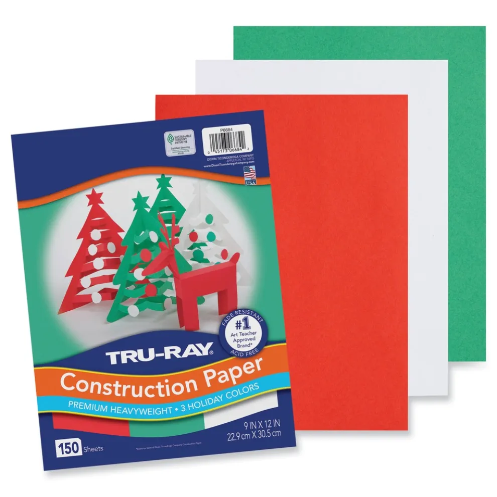 (150/Pack) Tru-Ray 9 x 12 70 lb. Text Weight Construction Paper – Assorted Holiday Colors – P6684