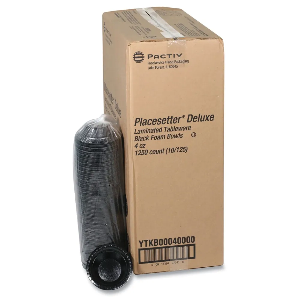 Pactiv Corp. YTKB00040000 4 oz. Placesetter Deluxe Laminated Foam Dinnerware Bowl – Black (1250/Carton)