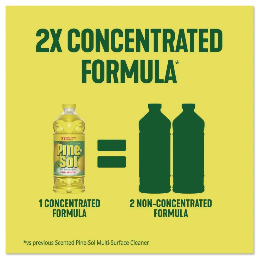 Power through tough dirt, grease and grime with this 2X concentrated formula, lasts 2X longer than previous Pine-Sol Scented formula.