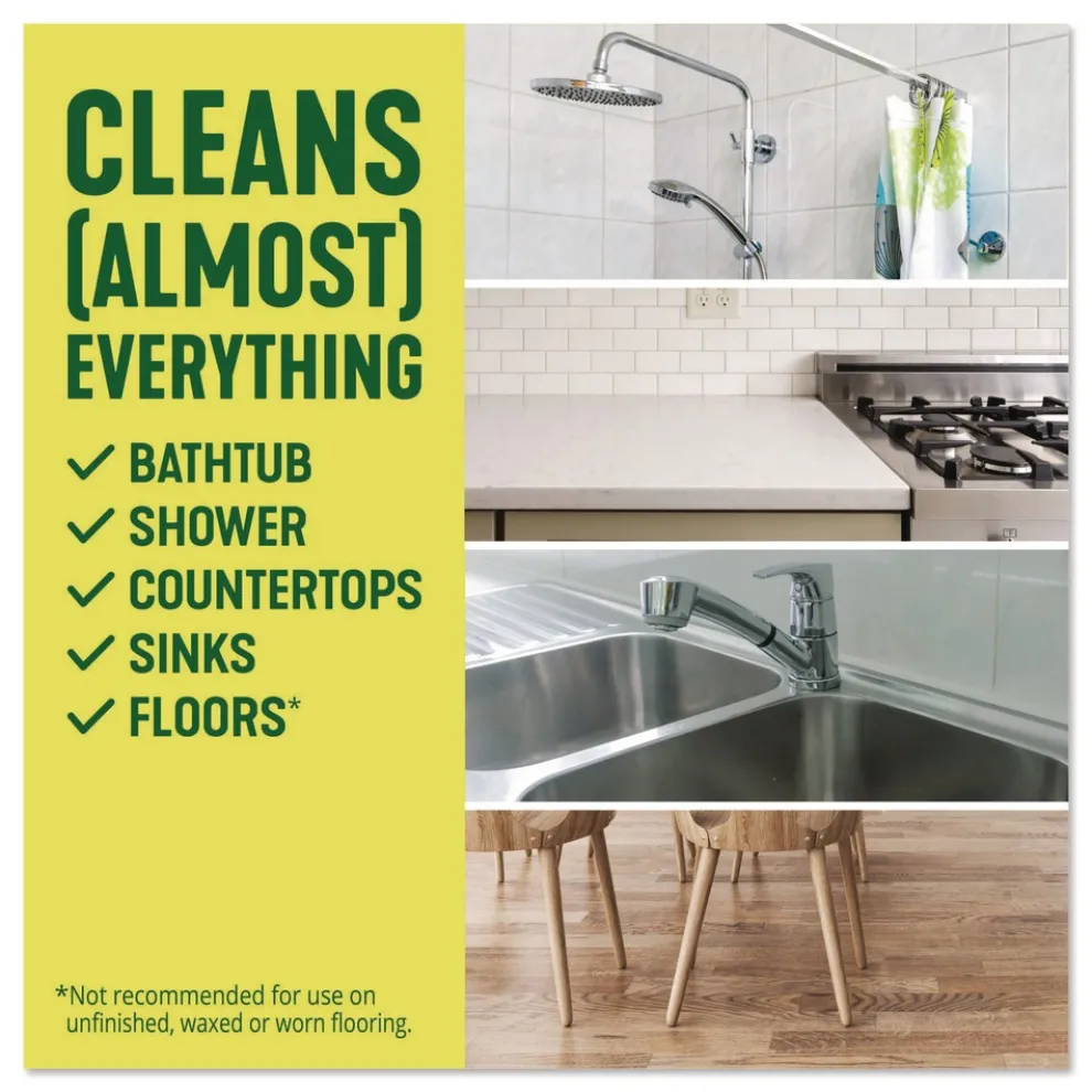 Use to clean countertops, sinks, garbage disposals, floors, sealed wood surfaces, furniture, walls, doorknobs, showers, tubs, toilets, exterior surfaces and more.