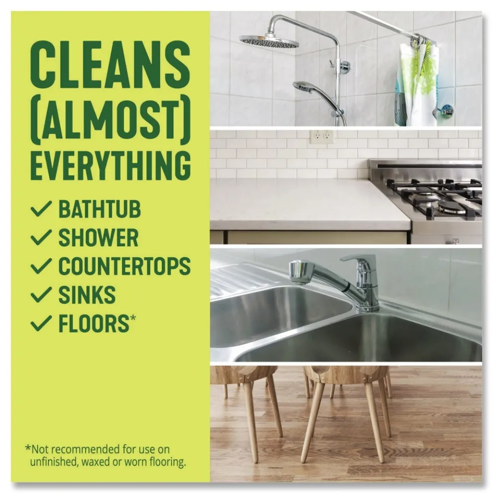 Use to clean countertops, sinks, garbage disposals, floors, sealed wood surfaces, furniture, walls, doorknobs, showers, tubs, toilets, exterior surfaces and more