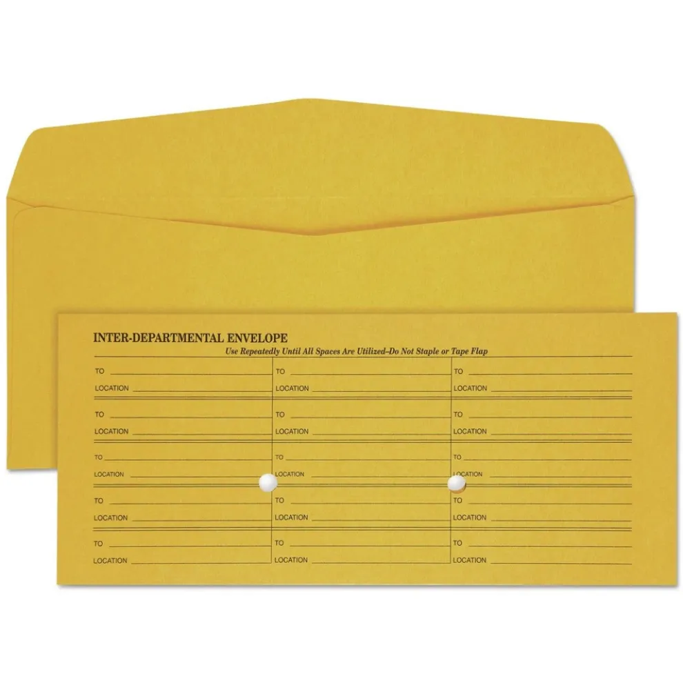 Exchange notes and files with coworkers using inter-department envelopes, which come printed for in-office use. The durable kraft paper will stand up to wear and tear as it’s passed along from office to office, and the smooth surface is easy to write on to keep track of its location. Plus, the brown color and windowless design prevents others from viewing the contents, and the ungummed opening simplifies the process.