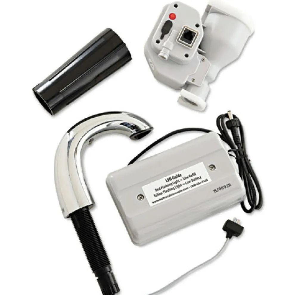Smart Sensor technology provides fail-safe hand detection. Touch-free system helps prevent the spread of germs and bacteria. Controlled-volume dispensing minimizes waste and over use. Reliable, low-maintenance unit delivers clog- and leak-resistant operation. Operates on 4 D batteries (sold separately).