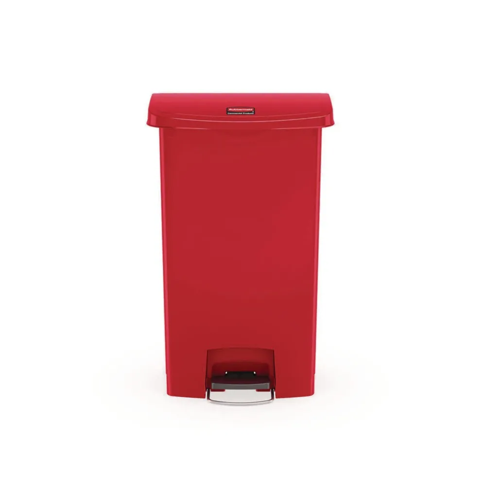 Rubbermaid Commercial 1883566 Streamline 13-Gallon Front Step Style Resin Step-On Container – Red