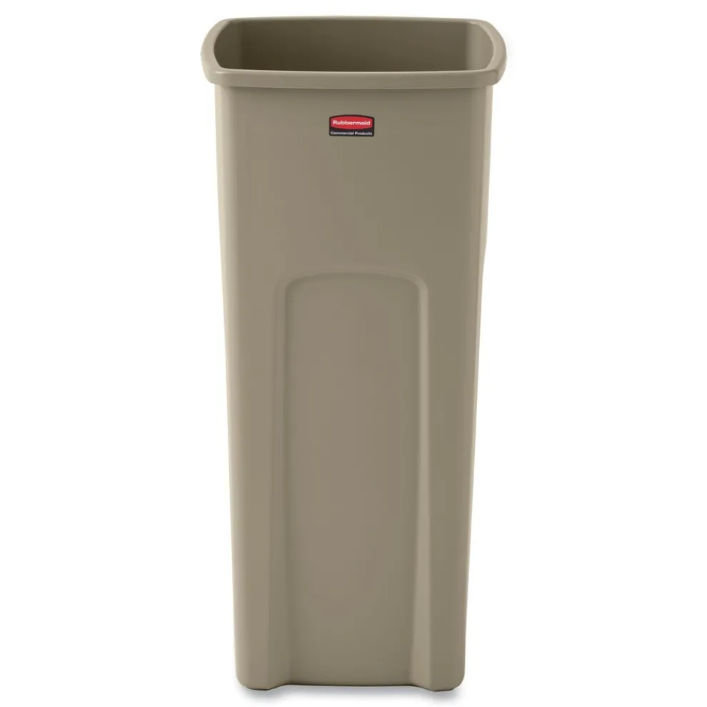 Rubbermaid Commercial FG356988BEIG Untouchable 23 Gallon Square Plastic Waste Container – Beige