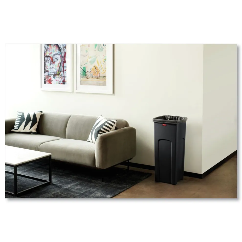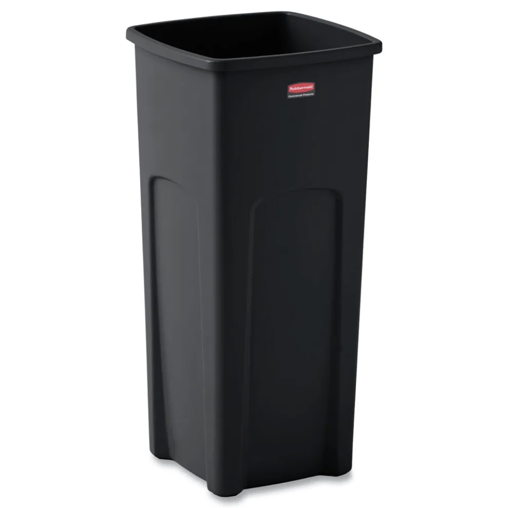 Rubbermaid Commercial FG356988BLA Untouchable Waste Container, Square, Plastic, 23gal, Black
