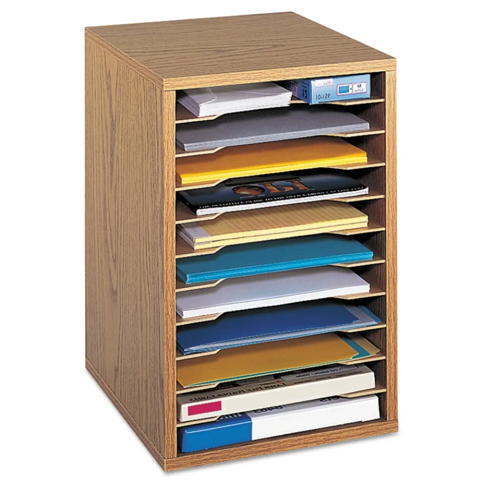 Safco 9419MO 11 Compartments 10.63 in. x 11.88 in. x 16 in. Wood Vertical Desktop Sorter – Medium Oak