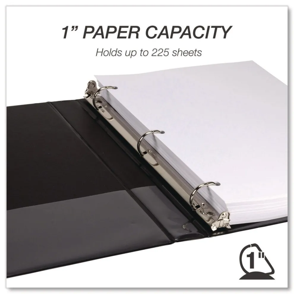 Samsill MP46430 11.5 in. x 8.5 in. 3 Rings 1 in. Capacity Durable D-Ring View Binders – Black (4/Pack)