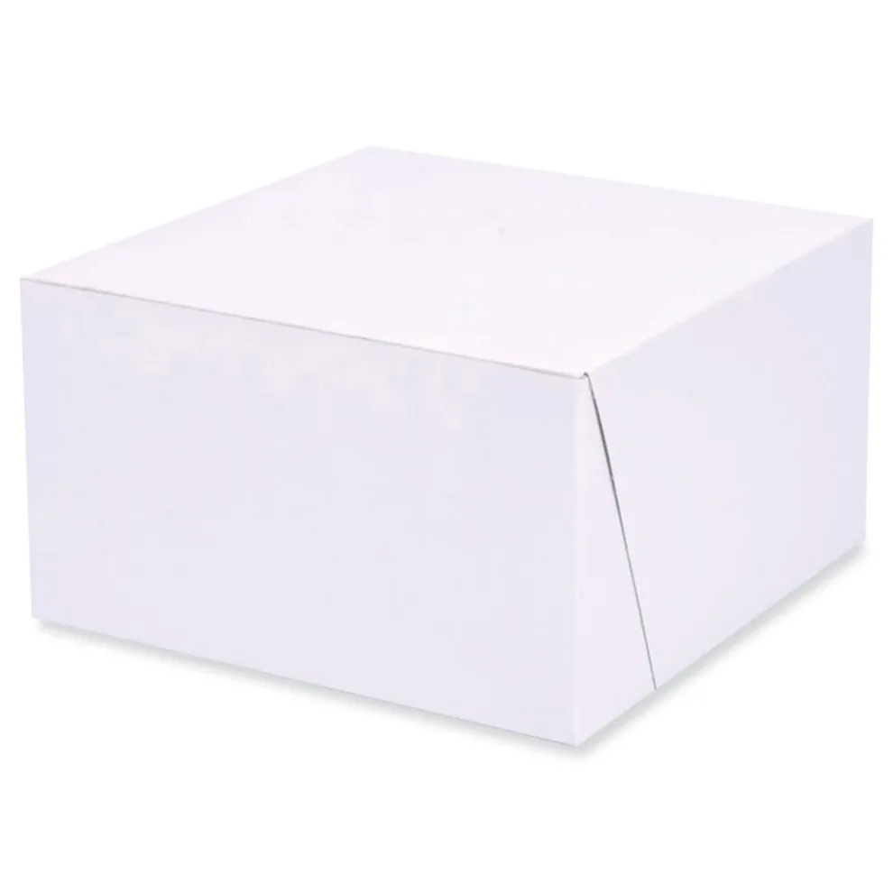 Traditional bakery boxes with locking corners ensure that your cookies and cakes arrive at their destination safe and sound. A tuck-in top creates a secure closure, protecting your baked goods. Convenient one-piece construction makes boxes easy to assemble. Sturdy paperboard bakery boxes provide an attractive presentation at an economical price.