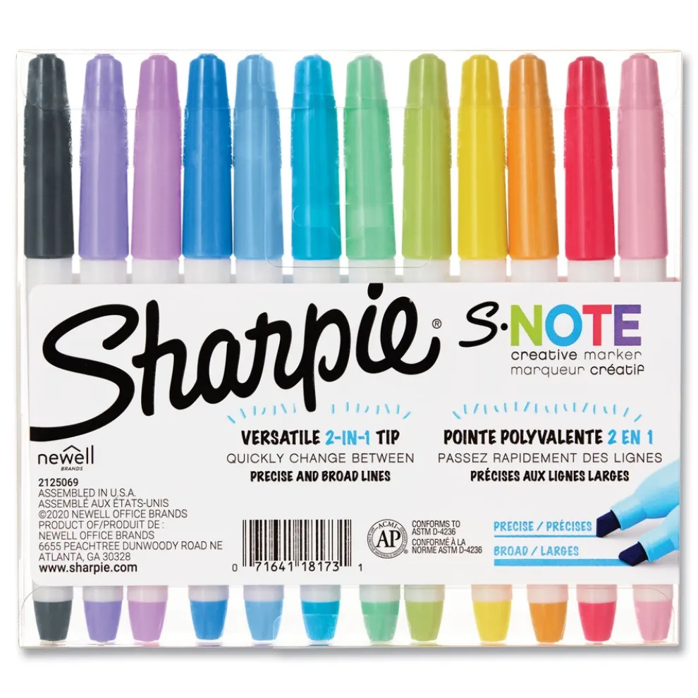 (12/Pack) S-Note Chisel Tip Creative Markers – Assorted Ink/Barrel Colors – 2117329