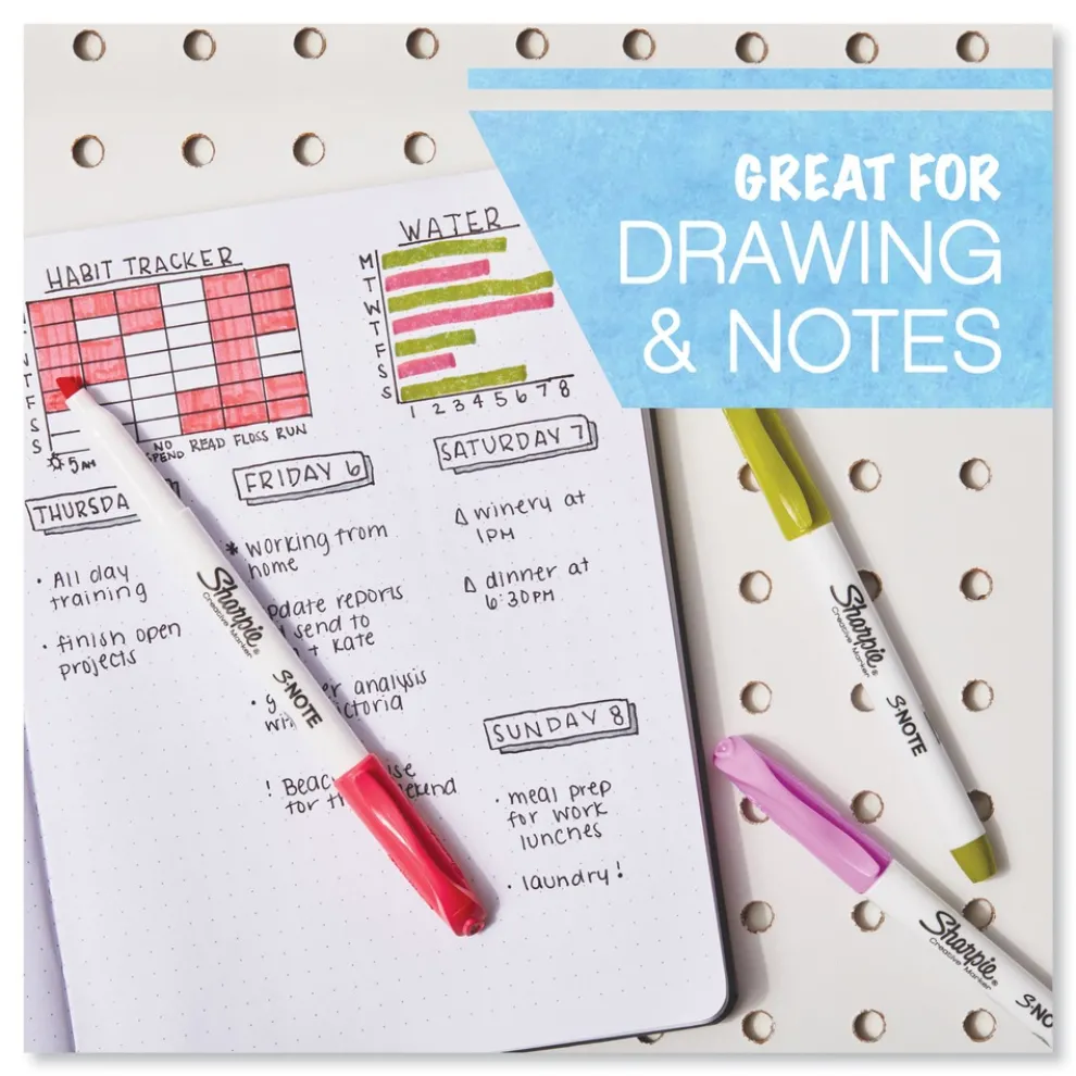 Ignite your imagination with Sharpie S-Note creative markers. Versatile and fun, they’re both a highlighter and a marker, adding a splash of color to note-taking, underlining, highlighting, drawing and more. Versatility is the name of the game with a chisel tip that lets you quickly switch between precise and broad lines. Plus, the no-bleed ink keeps your work looking clean. Unleash your creativity with Sharpie S-Note.