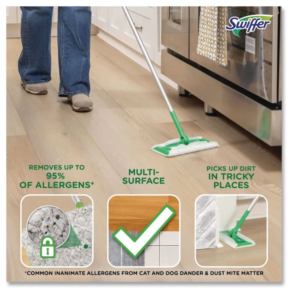 Use Swiffer dry cloth refills on floors and hard-to-reach places above the floor. These Swiffer pad refills leave no residue and are safe for wood floors, ceramic and vinyl tile, electronics, and other hard surfaces. Convenient disposable cloths eliminate the fuss of dust mops. Simply use and throw away.
