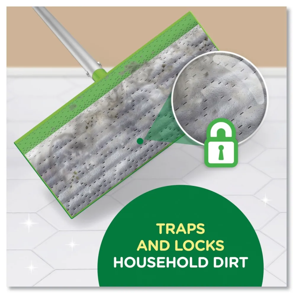 Premoistened cloths for 10 in. Swiffer sweeper. Wet wipes with a unique cleaning solution work to dissolve tough spots. Convenient disposable wipes remove dirt and grime. Safe for use on linoleum, vinyl, ceramic and finished wood floors. Swipe floors clean and throw wipes away – no rinsing required.