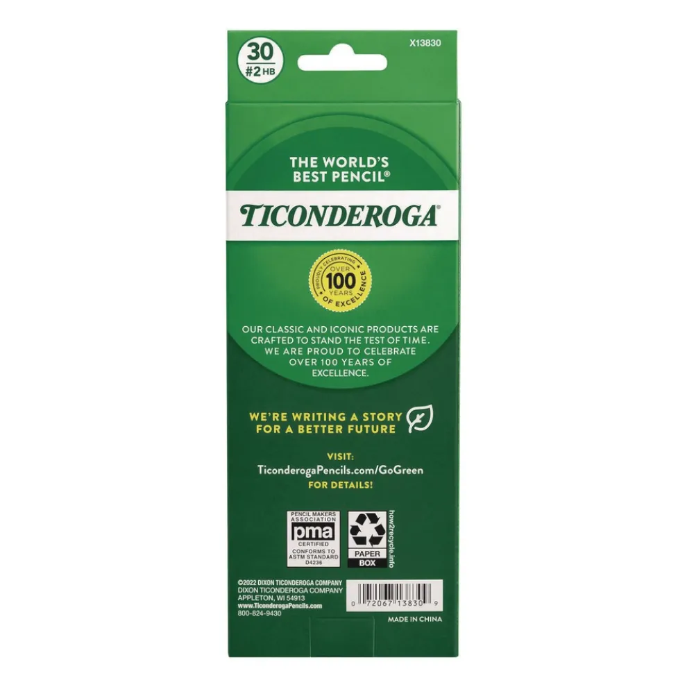 Ticonderoga X13830 HB (No. 2) Pre-Sharpened Pencil – Black Lead/Yellow Barrel (30/Pack)