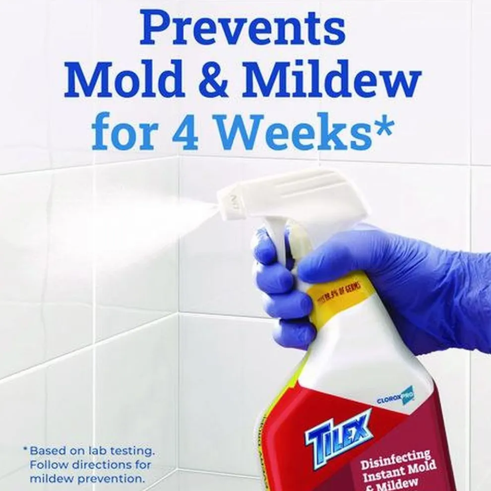 Tilex Disinfecting Instant Mildew Remover cleans mildew stains without scrubbing and whitens tiles. It removes and destroys mold spores. It cleans tiles, grout, toilets, and fiberglass. Using the power of bleach, Tilex Disinfecting Instant Mildew Remover disinfects and kills 99.9% germs. This cleaner is perfect for offices, day care centers, schools, hotels, restaurants and other commercial facilities. Packaging may vary.