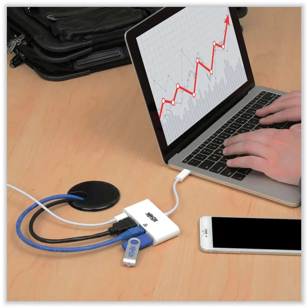 Tripp Lite U444-06N-HGU-C 3 in. USB-A/USB-C PD Charging/Gigabit Ethernet USB 3.1 Gen 1 USB-C to HDMI Adapter – White
