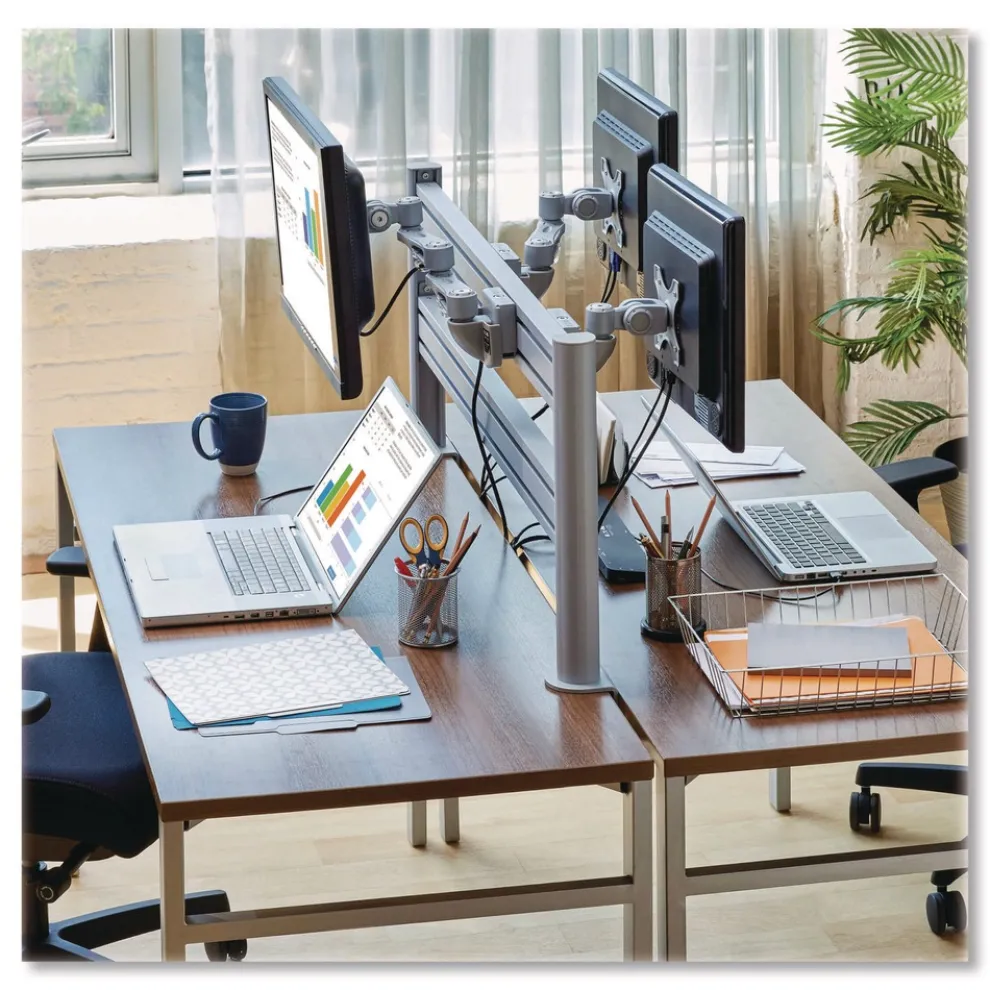 This VESA-compliant TV wall mount lets you place your digital signage, monitor or television where everyone can see it best. It’s ideal for office, hybrid and work-from-home environments, including office cubicles, art tables and lab workbenches. The stylish aluminum mount fits most flat-panel displays from 13″ to 32″ and supports up to 22 lbs. The articulating arm adjusts independently to optimize viewing angles, minimize glare and improve ergonomics. To minimize screen glare, reduce eye fatigue and increase viewing comfort, the mount features -15 to +15 tilt, -90 to +90 swivel and full 360 rotation for positioning your screen just right. The arm extends up to 10″ from the slat rail. For hassle-free display compatibility, this slat wall mount supports the following VESA mounting hole patterns: 75 x 75 and 100 x 100. Requires slat wall system for installation and easily attaches to the Slat Rail with Posts (DMSWKITTAA) or the Slat Rail (DMSWSLATTAA), both sold separately. Your monitor is elevated above the desktop, which frees up precious workspace. You can also slide the monitor along grooves and then adjust the viewing angle for optimal ergonomics. Grooves on both sides of the slat rail accommodate independently adjustable monitor setups when desks are pushed together back-to-back. Compliant with the Federal Trade Agreements Act (TAA), which makes it eligible for GSA (General Services Administration) Schedule and other federal procurement contracts.