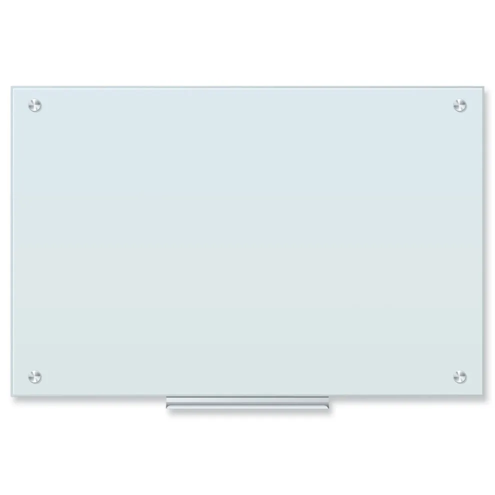 Frosted, tempered-glass dry erase boards are the perfect solution for frequent- and heavy-use areas: offices, classrooms, conference rooms… any residential or commercial space. Clean, frameless design adds a contemporary flair to your wall, while enabling you to hang multiple boards adjacent to each other to expand your writing surface as far as your intended environment allows. Premium glass writing surface erases easily with a simple board eraser, without ghosting or staining, consistently outperforming all traditional melamine and painted steel alternatives—simply use any dry erase board spray or wet/dry board wipes on occasion to keep your board looking as good as new. Although all dry erase and glass markers work well with this board, U Brands dry erase markers provide the ultimate writing and eras-ability experience. All wall-hanging hardware is hidden under the mounting bolts to deliver a sleek, modern floating appearance, while simultaneously enabling both vertical and horizontal mounting options. The board is packaged with extra supportive corrugate material that is highly resistant to damage during shipping; all corrugated material can be recycled once unpacked.