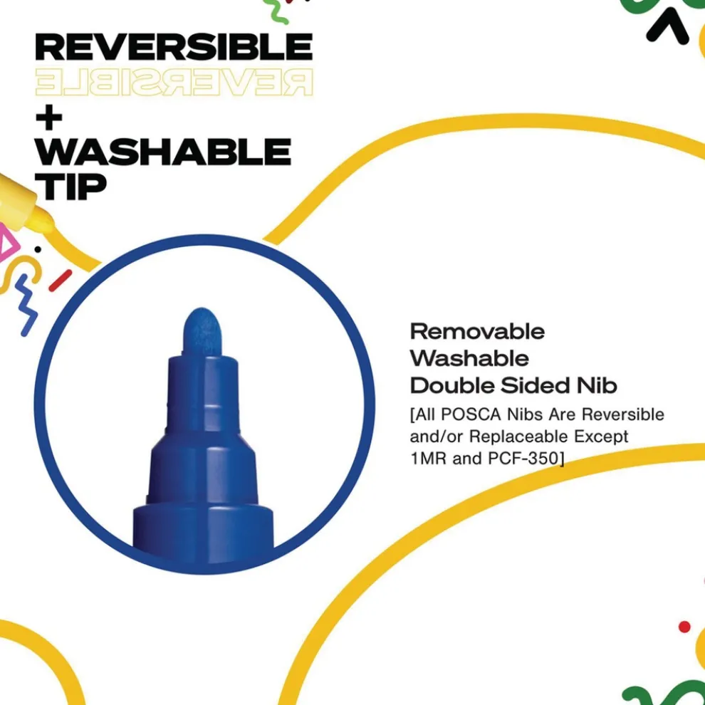 POSCA marker can be used on almost any surface you can dream up: paper, glass, cardboard, wood, porcelain, metal, textiles, ceramics, plastic and much more. The felt bullet tip marker is versatile, which allows you to produce neat and precise lines. The alcohol- and solvent-free opaque paint covers surfaces well, is blendable, dries quickly and can be layered when dry. Ideal for beginners and professionals alike, this marker is a fluid and fun choice for retail windows, car lots, art, craft or decor. The tips can be rinsed with water to keep marker intact, allowing you to blend without fear of ruining your marker.