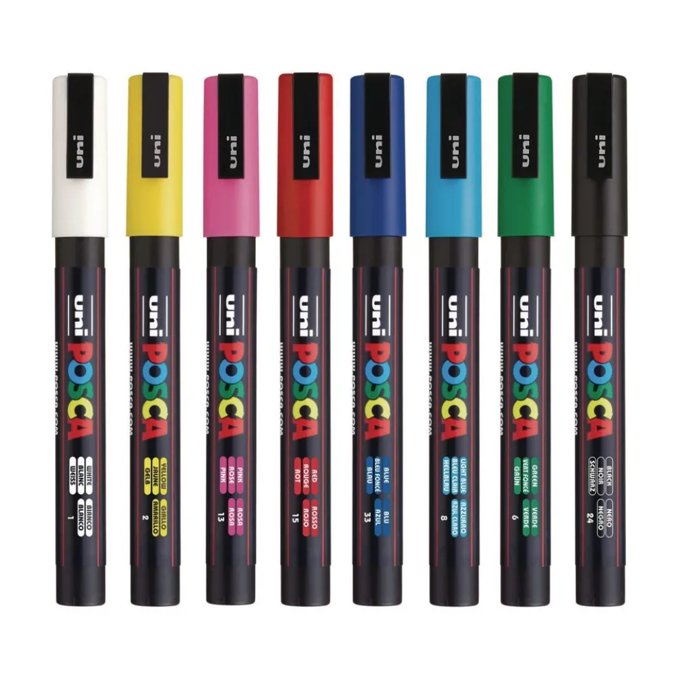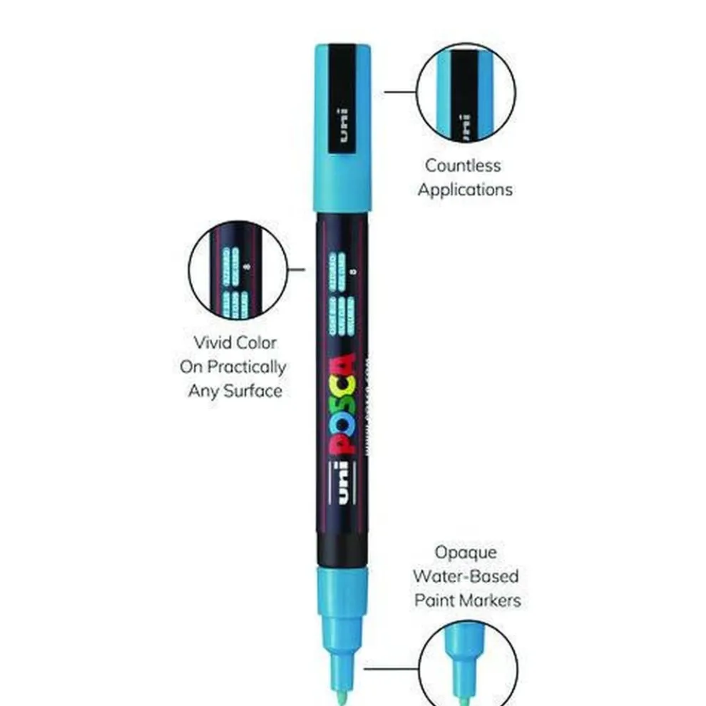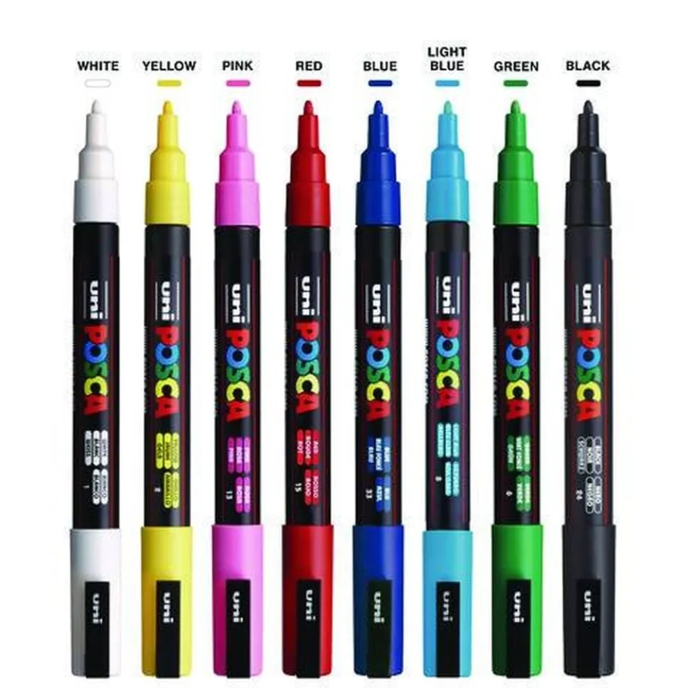 uni-ball PC3M8C Fine Bullet Tip Water-Based Paint Markers – Assorted Colors (8/Pack)