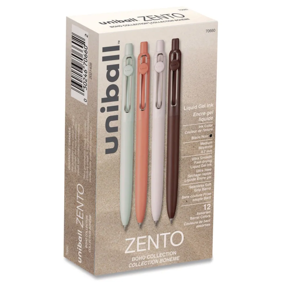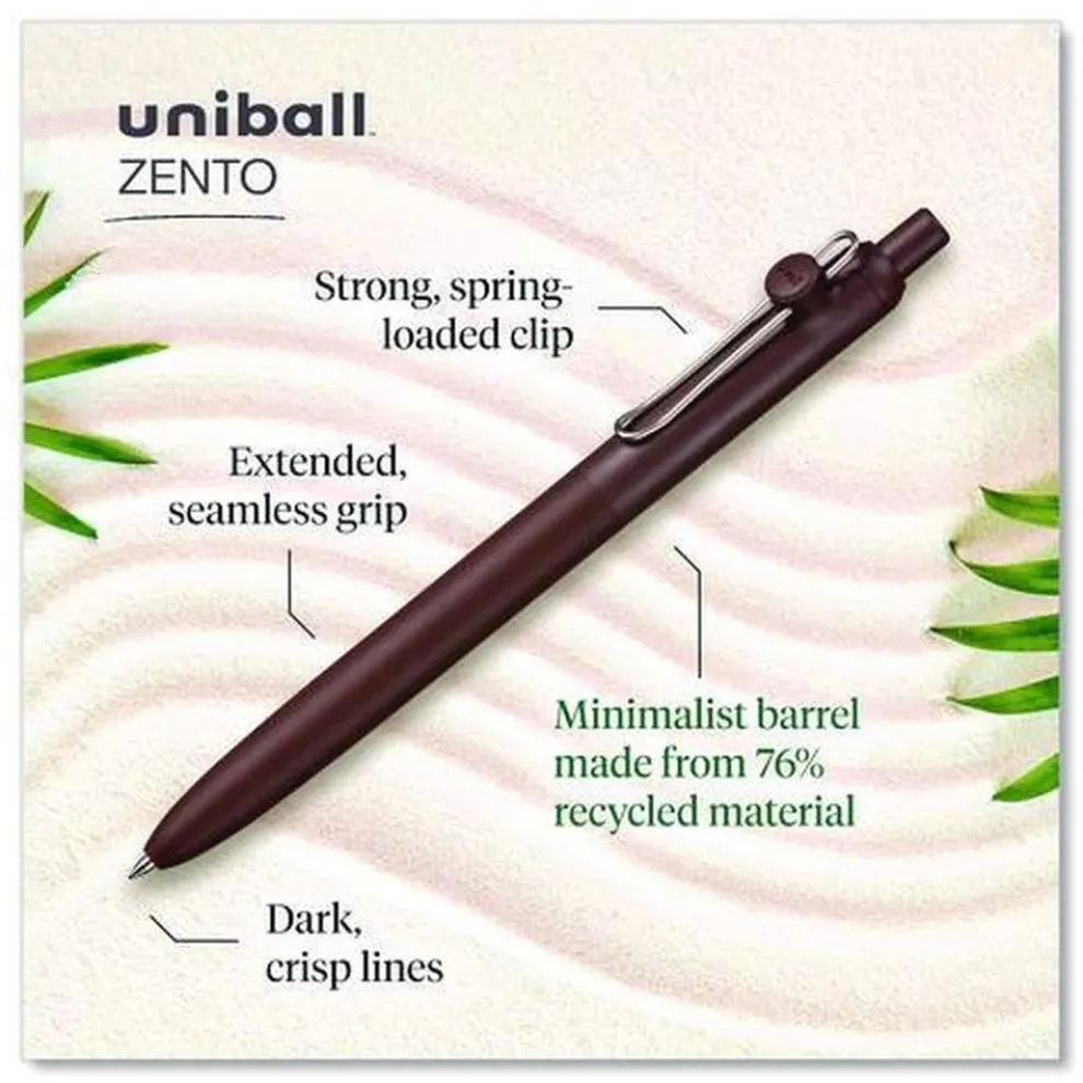 Zento is a sublime fusion of writing excellence and mindful living. With uniball Zento, every stroke on paper becomes a journey of tranquility and self-discovery. The uniball Zento features a medium 0.7 mm point and liquid gel ink that dries quickly while providing a super smooth flow. The uniball Zento collection showcases a thoughtfully designed, minimalist barrel with a seamless soft grip made from recycled material. Each barrel color is carefully curated to evoke a sense of insightfulness and reflective thought. In addition, the functional and strong spring-loaded wire clip opens wide to effortlessly attach to any pocket, document, folder, or notebook. Experience a super-smooth quick-dry writing flow that feels like a gentle meditation for your hand, fostering mindfulness with every word.