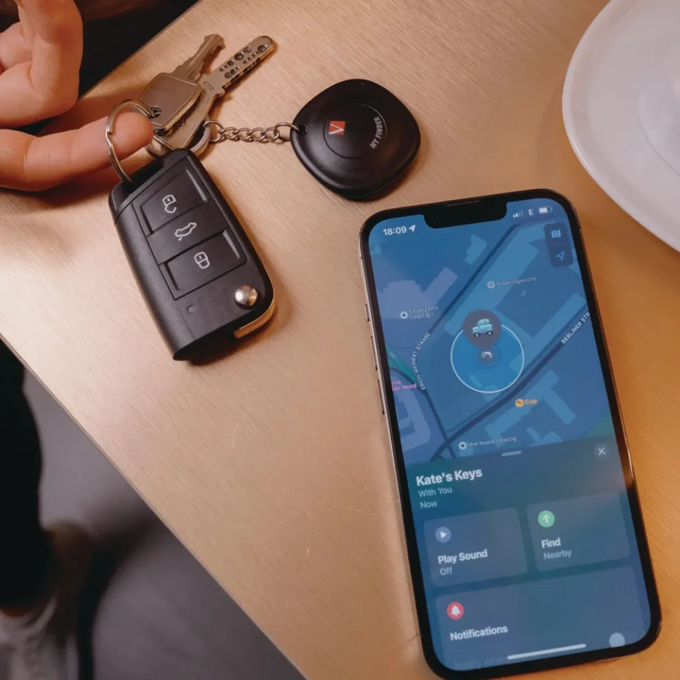 Our tracking device works exclusively with Apple’s Find My App. Simply attach MyFinder to the item you want to track and use the Apple Find My App to locate it. When you are in close range of the Apple Find My ecosystem, you can locate your lost item by selecting “Play Sound” in the app, allowing you to follow the beep to your item. You can also select your item in the app and locate it on the map an anonymous, encrypted process to protect your privacy. With the app’s Lost Mode, you can also enter your contact details in the event that your missing item is located by someone in the Apple Find My network. With smart notifications enabled on the device by default, you will receive an alert on your phone when your MyFinder is out of Bluetooth range. Verbatim’s MyFinder is water-resistant, dustproof, and has up to 12 months battery power.