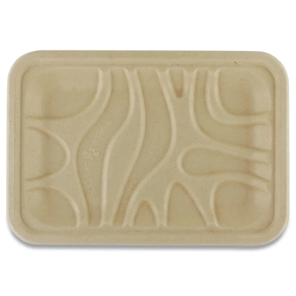 World Centric TRSC2SLLF 8.2 in. x 5.7 in. x 0.7 in. PLA Lined PFAS-Free Paper Fiber Trays – Natural (500/Carton)